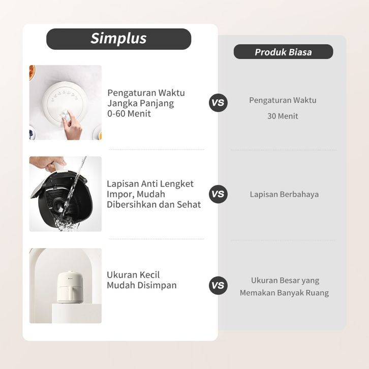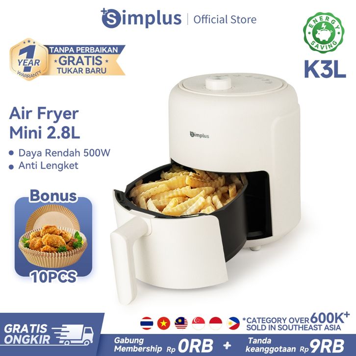 Simplus Air Fryer 500w Low Watt 2.8L Ukuran Kecil Mudah Disimpan Multifungsi untuk Penggunaan di Rumah