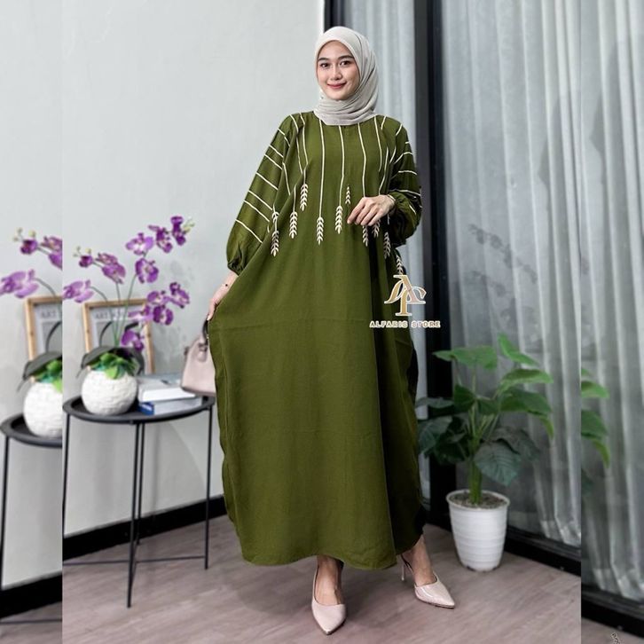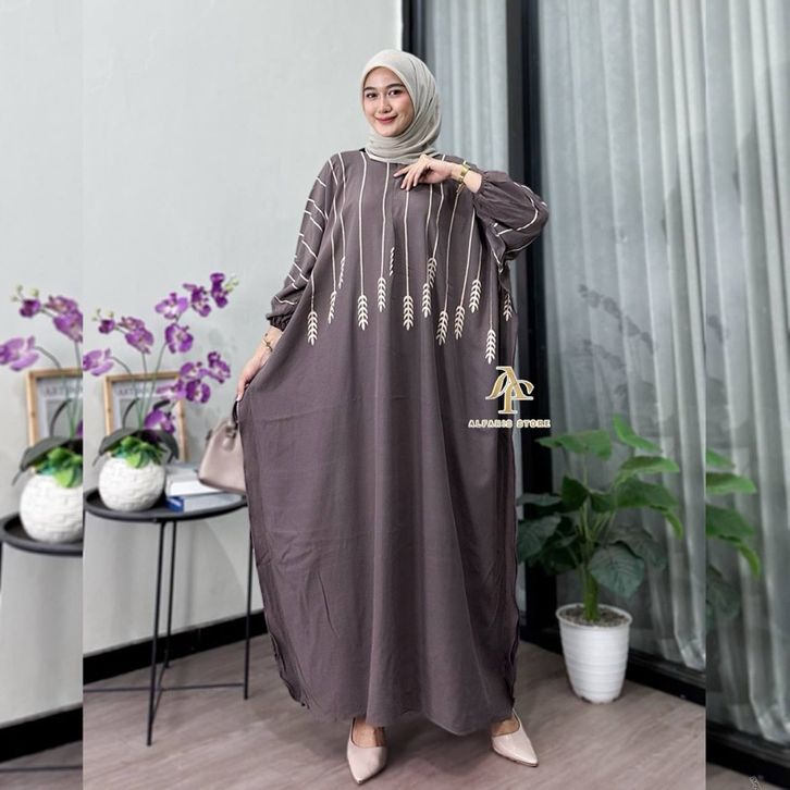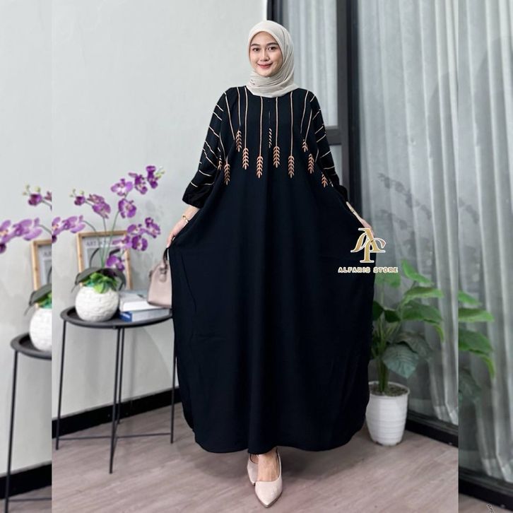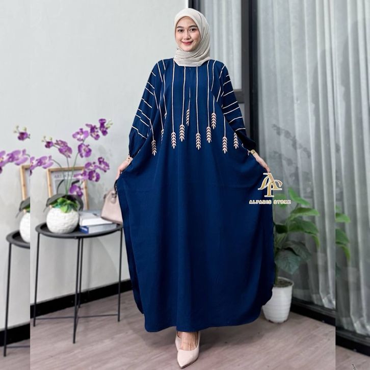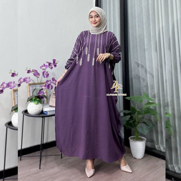 Kaftan Motif Poppy Ld 180 cm Kaftan Panjang Muslim Wanita Nyaman
