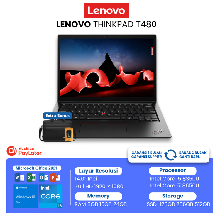 LAPTOP LENOVO THINKPAD T480 T480S T490 T490S INTEL CORE i5 - i7 GEN 8 14" INCH LAPTOP GAMING SECOND BERKUALITAS
