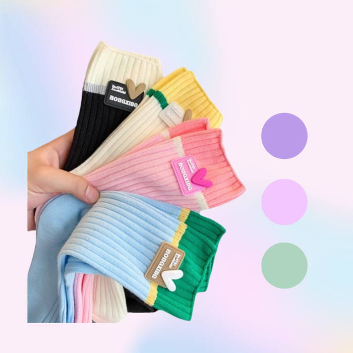 KAOS KAKI WANITA DEWASA |VINTAGE KOREAN JAPANESE STYLE AUTUMN| WOMAN SOCKS PASTEL COLOUR - HITAM