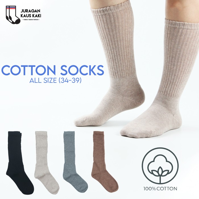 KAOS KAKI WANITA PANJANG SEBETIS SELUTUT POLOS KATUN RAJUT KOREA - HITAM