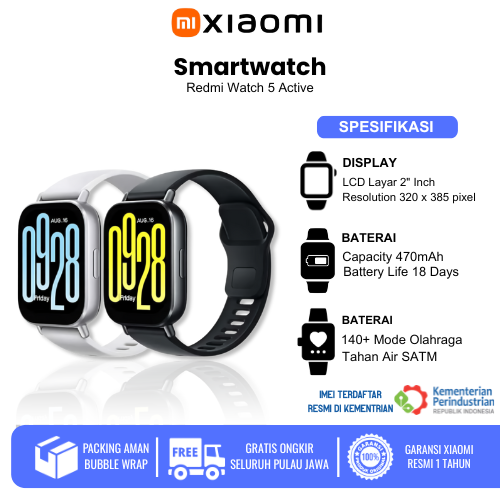Smartwatch Xiaomi Redmi Watch 5 Active | 2.0" LCD | Baterai Tahan 18 Hari | Tahan air 5ATM | Jam Tangan Pria Wanita