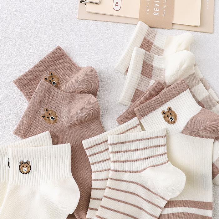[LUCKYDINO] KAOS KAKI BEAR CHOCOLATE CUTE WOMEN SOCKS KAOS KAKI BERKUALITAS SQUARE BROWN WHITE KAUS KAKI BER COKLAT LEMBUT KOREAN STYLE POLKA DOT - COKLAT