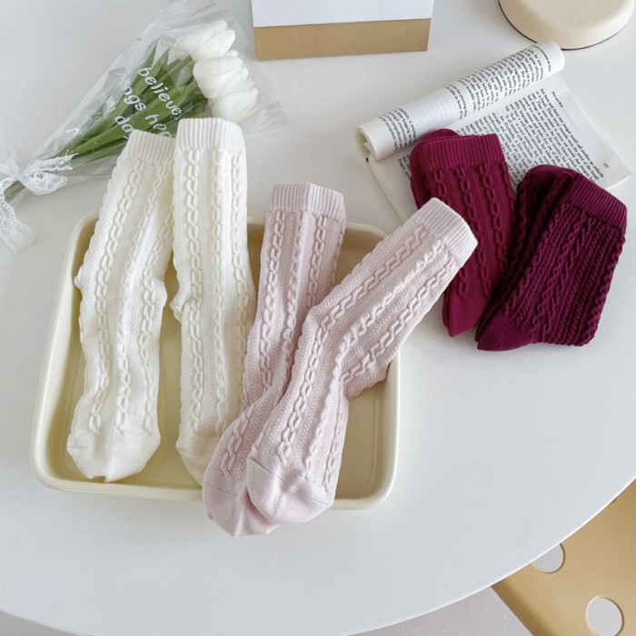 2333 KAOS KAKI WANITA TEBAL HANGAT MUSIM DINGIN BAHAN KATUN KNIT MUSIM DINGIN WINTER WOMEN SOCKS KOREAN STYLE - UNGU TUA