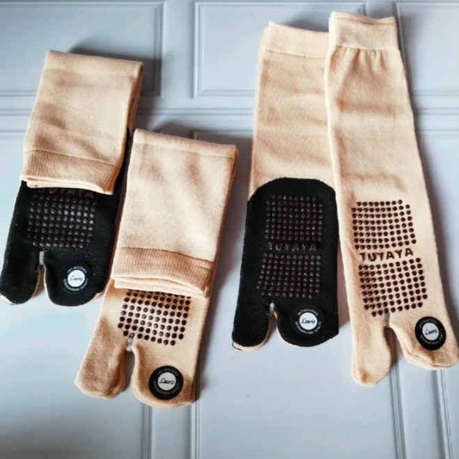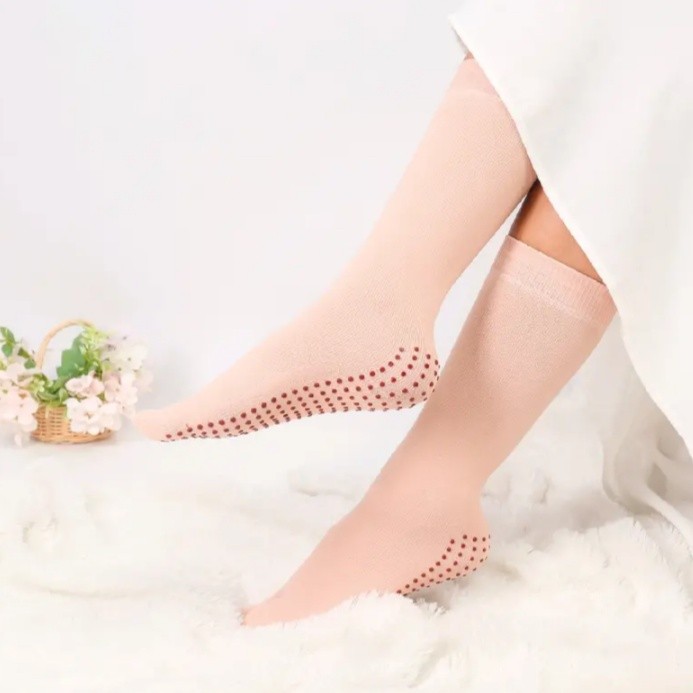 KAOS KAKI JEMPOL PANJANG WANITA MUSLIMAH BINTIK ANTI SLIP WARNA HITAM DAN KREM KULIT - CREAM