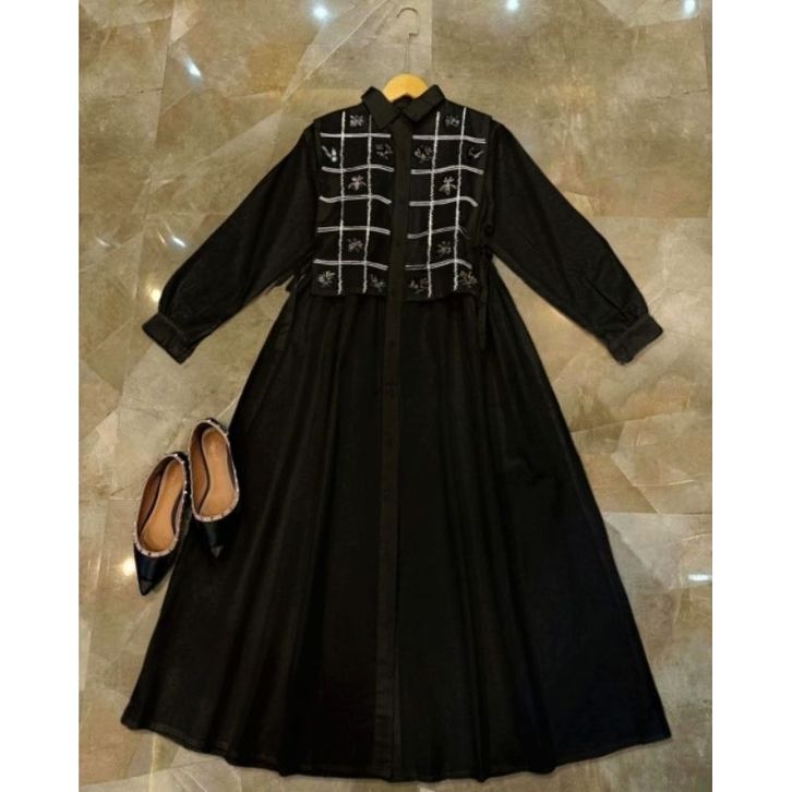 Afifah Dress Gamis Kondangan Remaja Dewasa Kekinian Gamis Mewah Bahan Polo Linen Mix Bordir