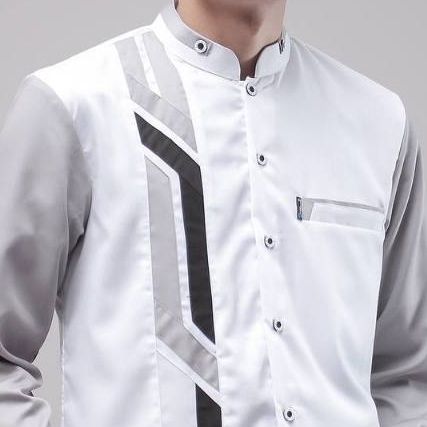 Baju Koko Pria Dewasa Elrumi Lengan Panjang Motif Sinergi Warna Putih