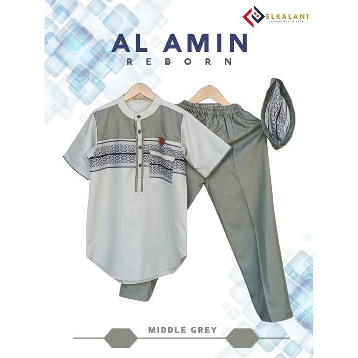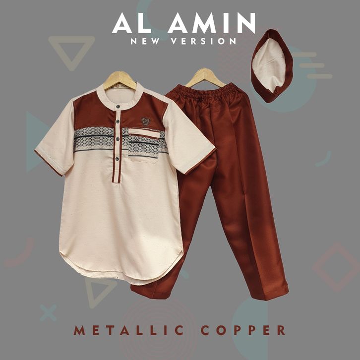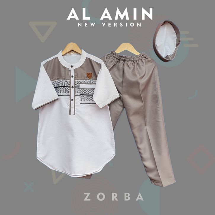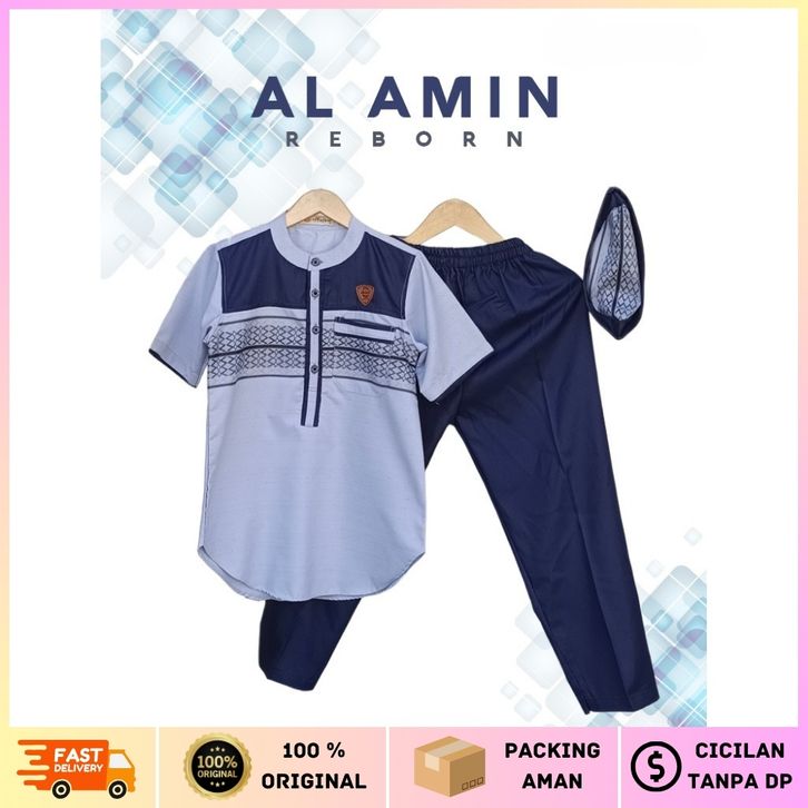 Setelan Baju Koko Anak Laki Laki Kurta Al-Amin Lengan Pendek Usia 4 - 13 Tahun