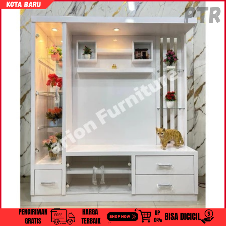 lemari kaca ruang tamu Back Drop Tv/ Bufet TV / bufet Partisi 43-55inc Bufet Pajangan Hias Lebar160/180cm FREE DELIVERY