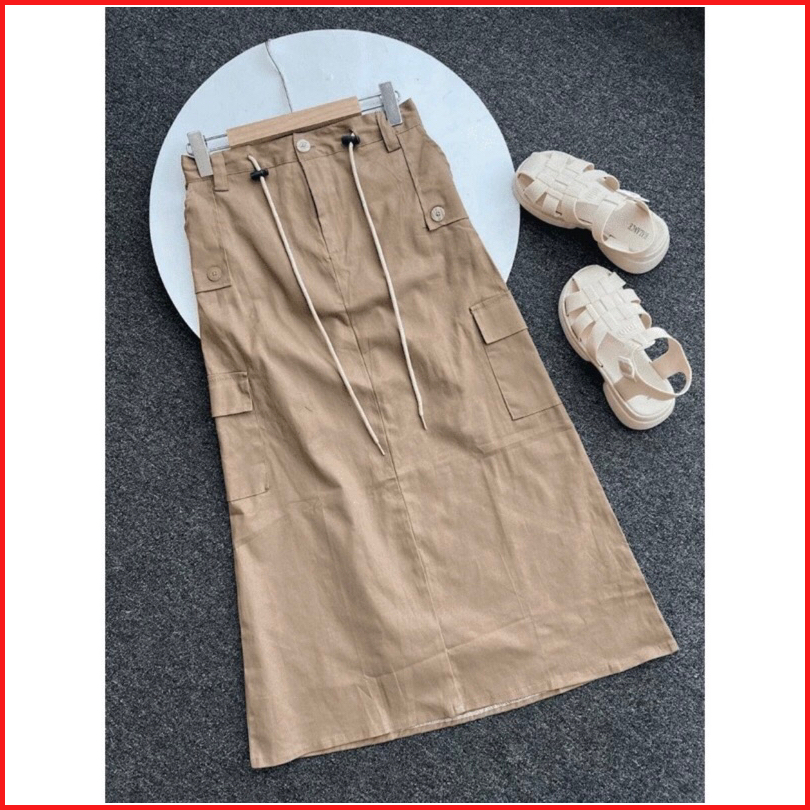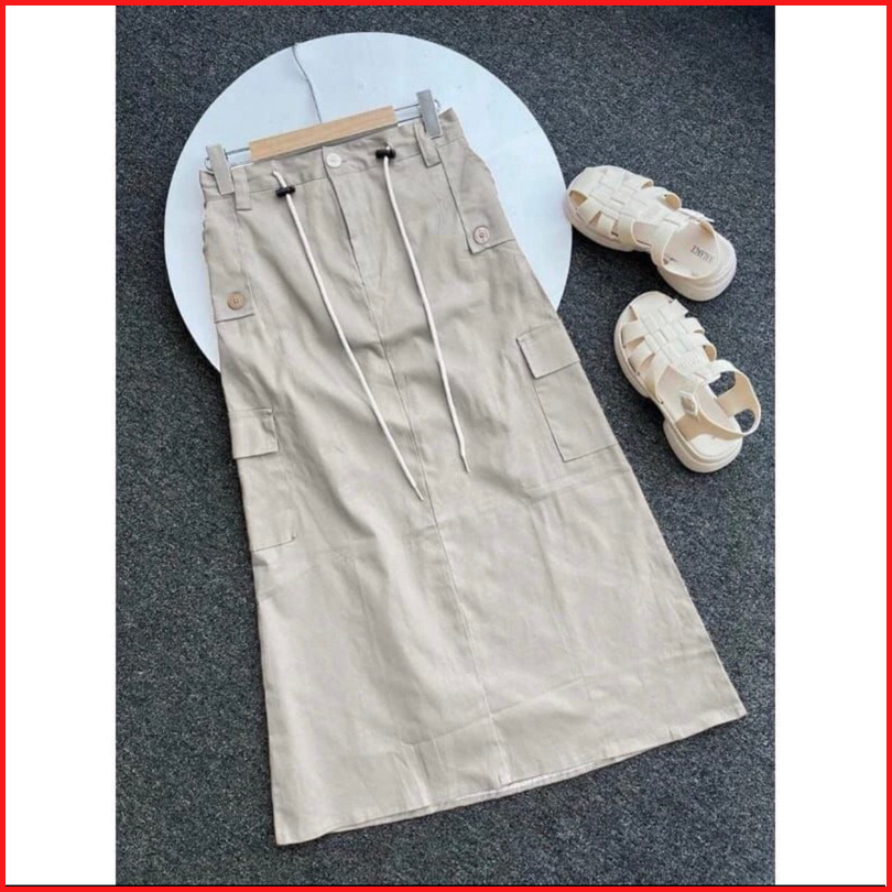 Rok Cargo Wanita Panjang Korean Lily Skirt Style Kekinian Rok Cargo Twill Import