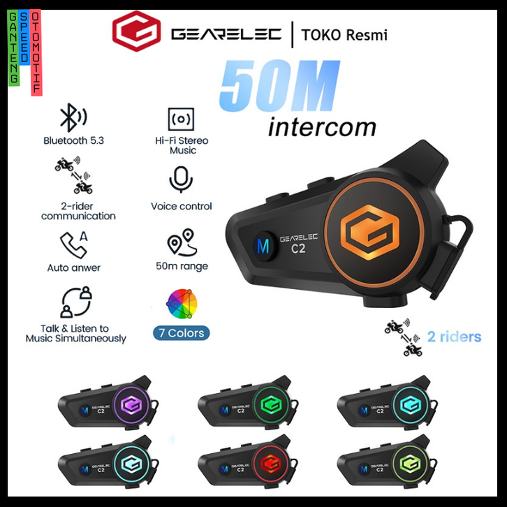 GEARELEC C2 HELM INTERKOM BT5 3 UNTUK 2 RIDERS SUPPORT INTERCOM & LISTEN TO MUSIC SECARA BERSAMAAN ORIGINAL GERATIS ONGK
