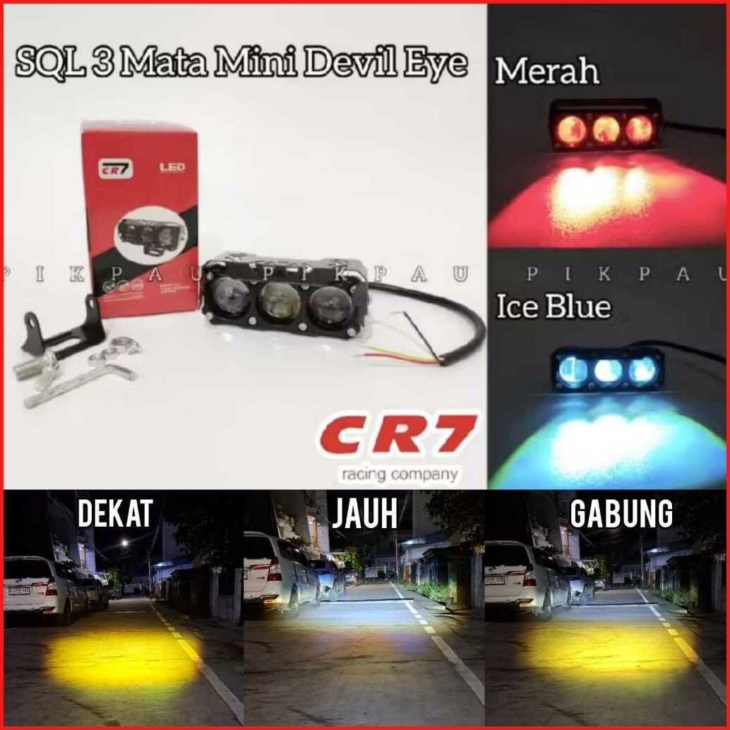 Lampu Tembak Mini Laser 3 Mata Devil Eye Super Terang Full Aluminium Putih Kuning