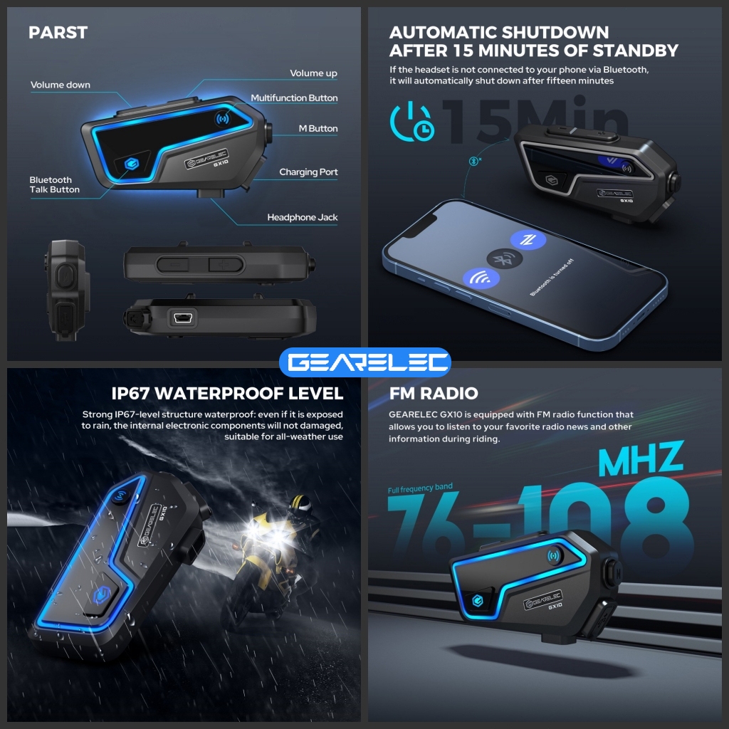 GEARELEC GX10 BT5.2 HELM INTERCOM SEPEDA MOTOR HEADSET SUPPORT 10RIDERS IP67 TAHANAIR MUSIC SHARING ORIGINAL GERATIS ONG