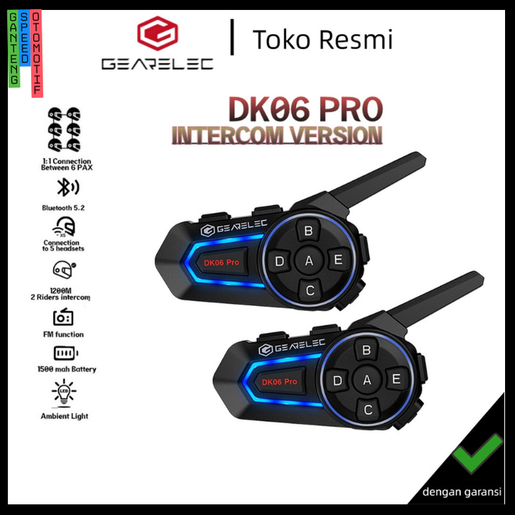 GEARELEC DK06 PRO HEADSET INTERKOM HELM SEPEDA MOTOR UNTUK KONEKSI 1:1 ANTARA INTERKOM 6 PAX 1200M V6 PRO ORIGINAL GERAT