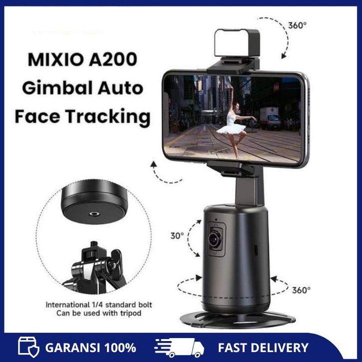 [Mall] MIXIO A200 Auto Face Tracking Gimbal Handphone Stabilizer 360° With Lampu Led