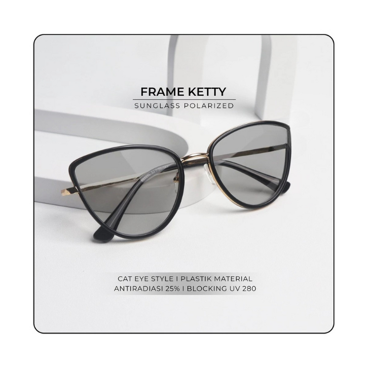 FRAME KETTY KACAMATA PHOTOCROMIC NORMAL PABRIK NO MINUS MODEL CATEYE STYLE GAYA PRIA WANITA COOL ELEGAN CLASSY