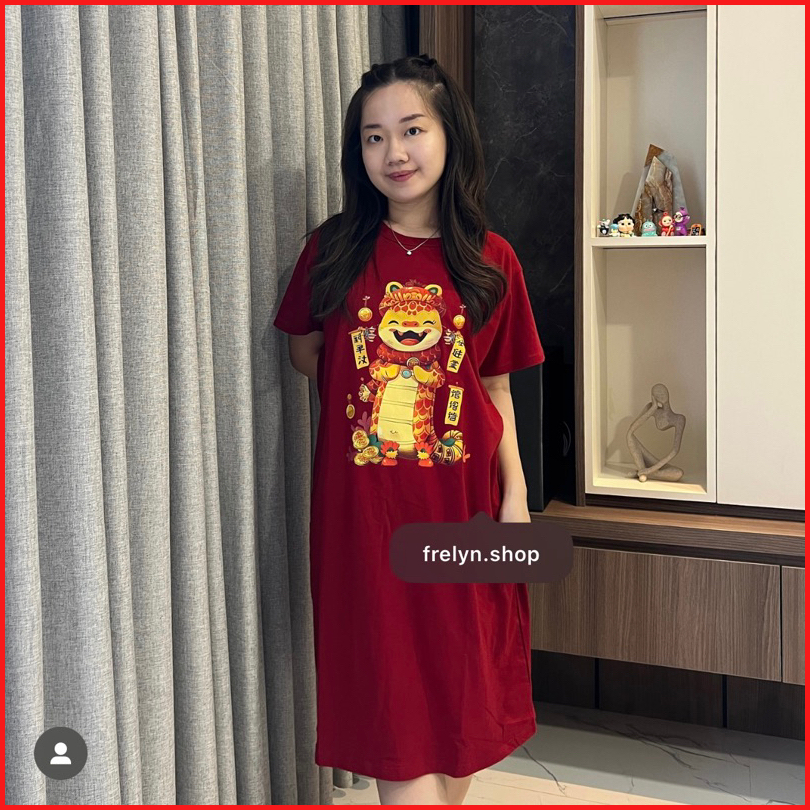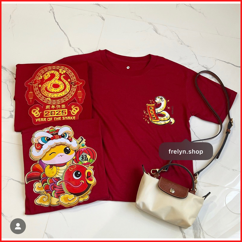 Frelyn Shop - Red Chinese New Year 2025 Baju Kaos Tshirt Tumbr Tee Naga Imlek Ular Snake Maroon