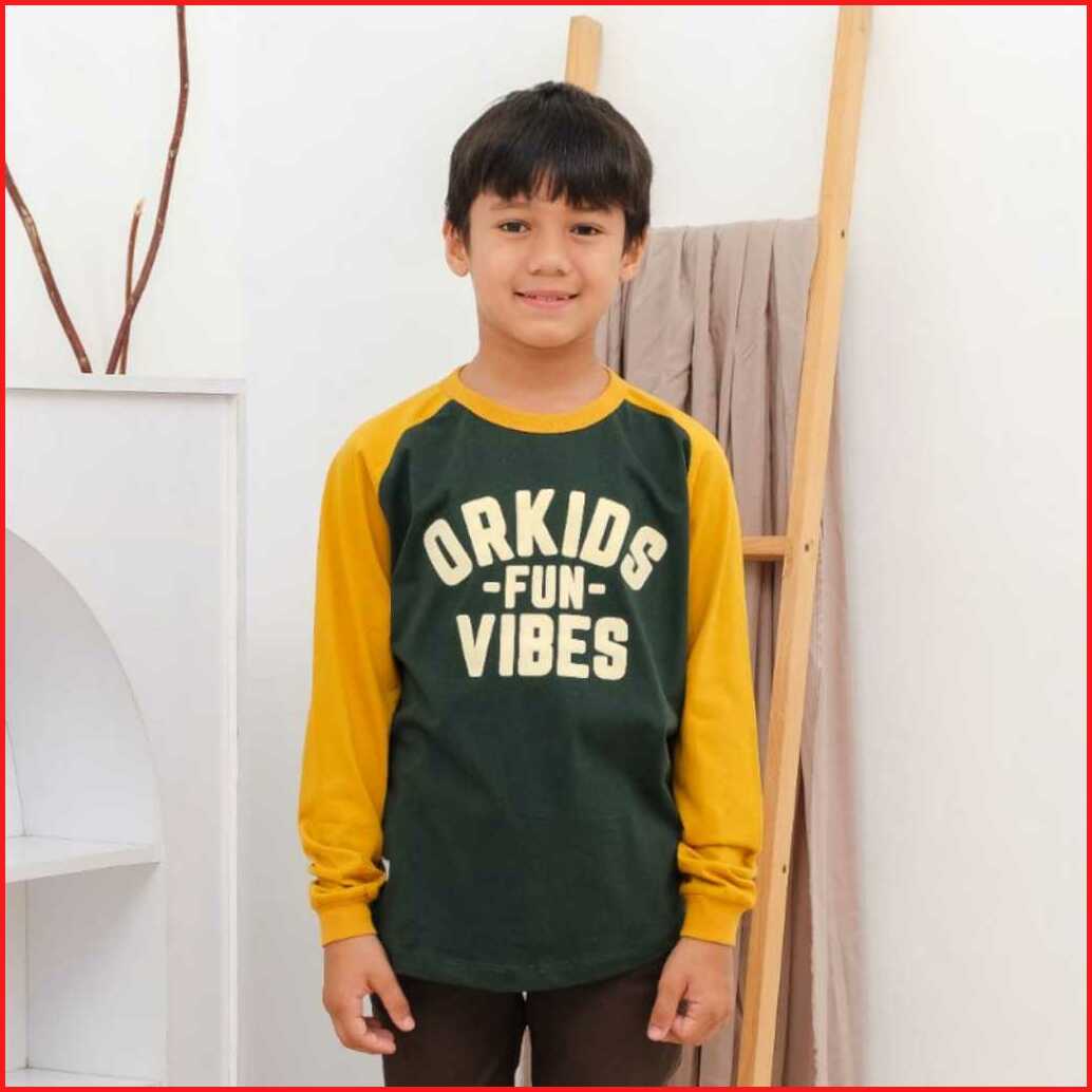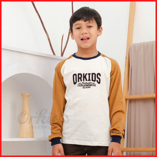Orkids Kaos Panjang Anak Laki-laki Umur 1 - 12 Tahun Bahan Katun Combed 24 Reglan Tazer Bw Almon