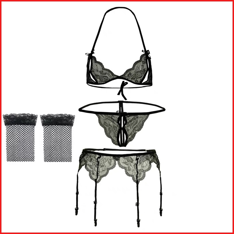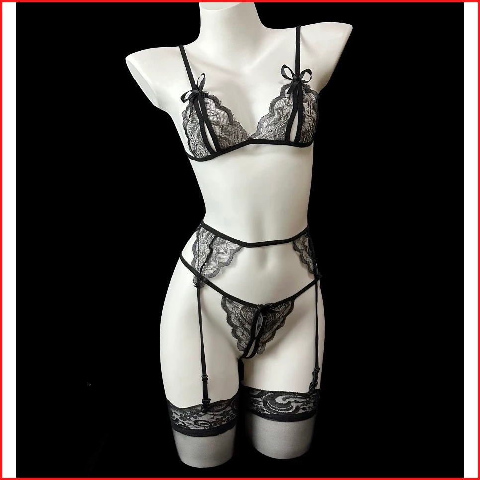 Sexy Lingerie Set Open G String Transparan Lace Thong Garter Belt Lingerie T06