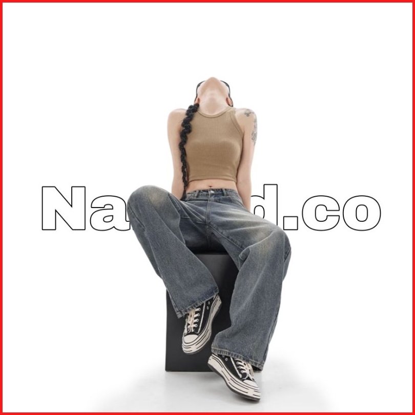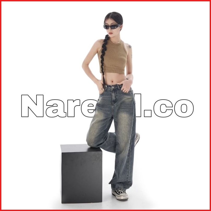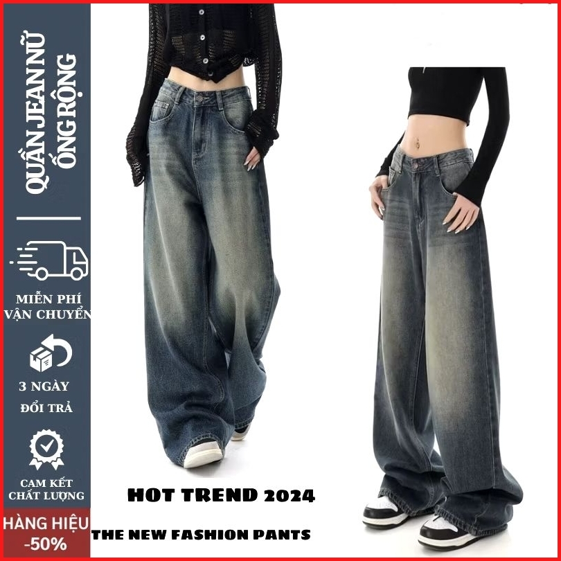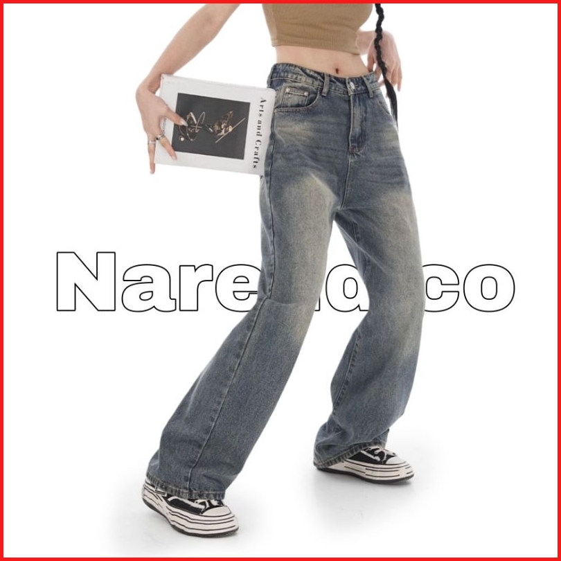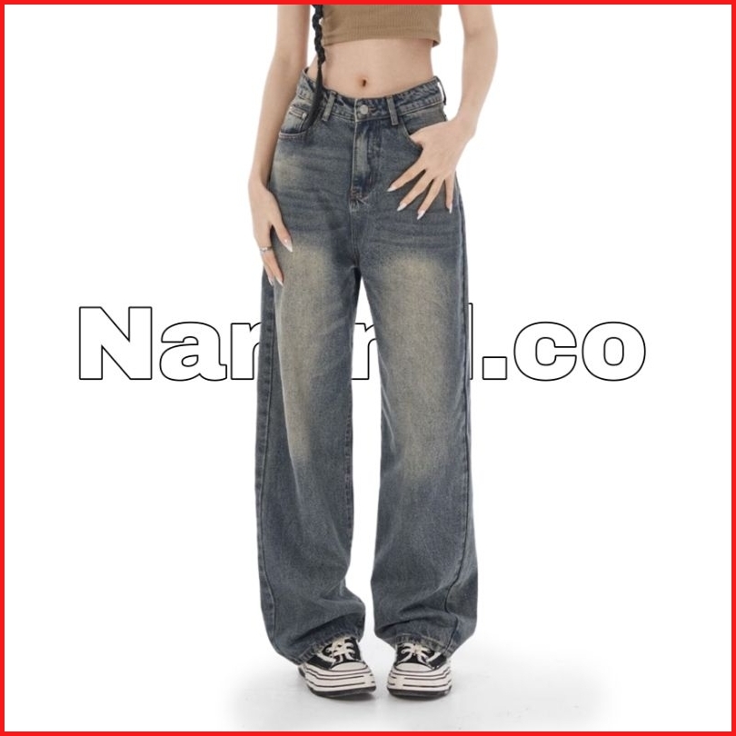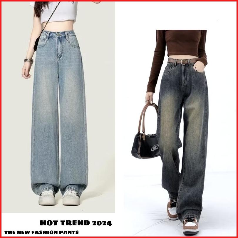 Biru Retro Highwaist Celana Jeans Wanita Loose Kekinian