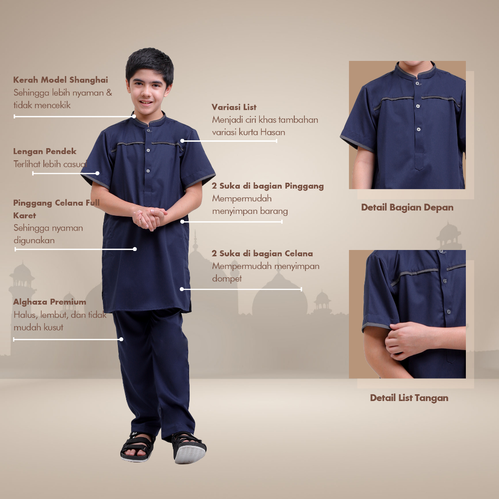 Alghaza Mubarak | Kurta Anak Pria Setelan | Kurta Hasan Anak Lengan Pendek