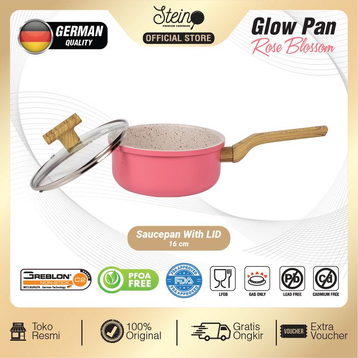 STEIN Glowpan Saucepan 16cm Wood Handle with Lid - Panci Satuan Lapisan Marbel + Tutup - Cream Natural