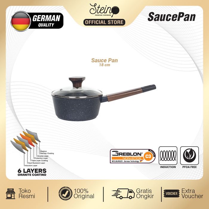 STEIN Panci Susu Saucepan Onyx 18cm Granite German non-stick coating