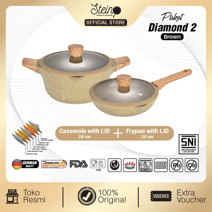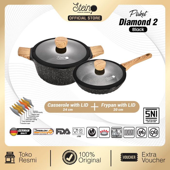 STEIN Cookware Paket Diamond 2 | Set Panci Wajan (Casserole 24cm + Frypan20cm)