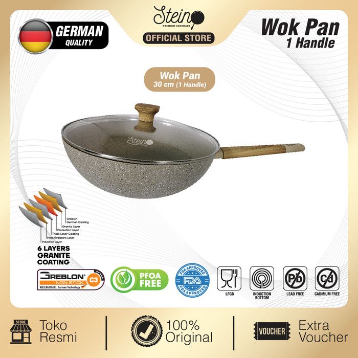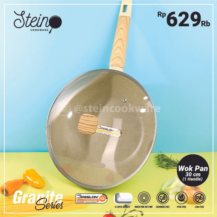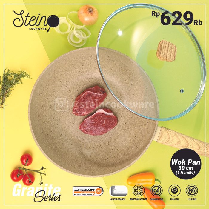 STEIN Onyx Wok Pan Panci GERMAN ANTI-LENGKET (6 Layer Granite German Greblon)- 30cm (Panci Wajan) - Black