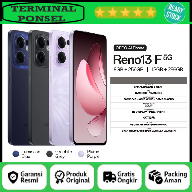 OPPO Reno 13 F 5G 8GB+256GB ( +12GB Extended Ram ) Display Rigid AMOLED, Snapdragon® 6 Gen 1 | reno 13f 5g