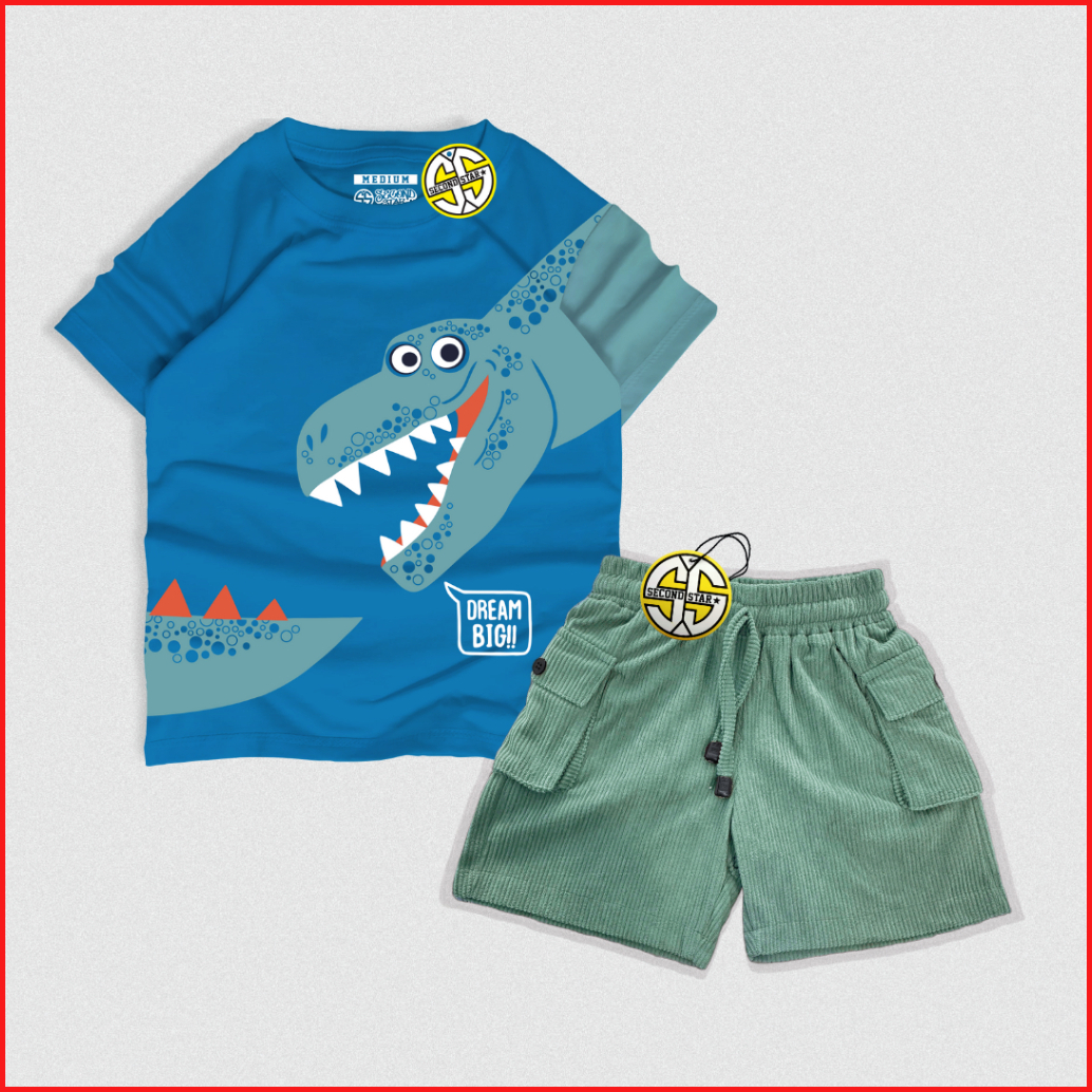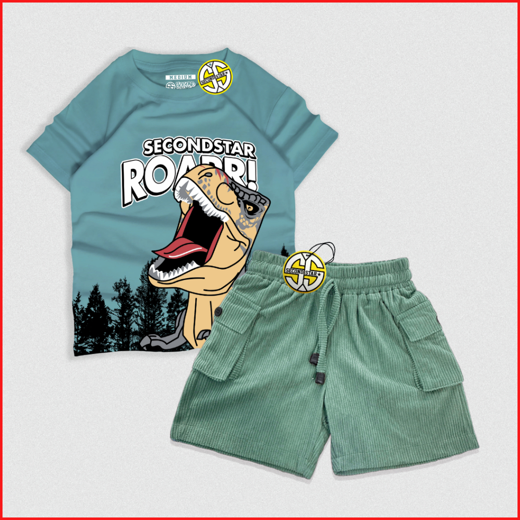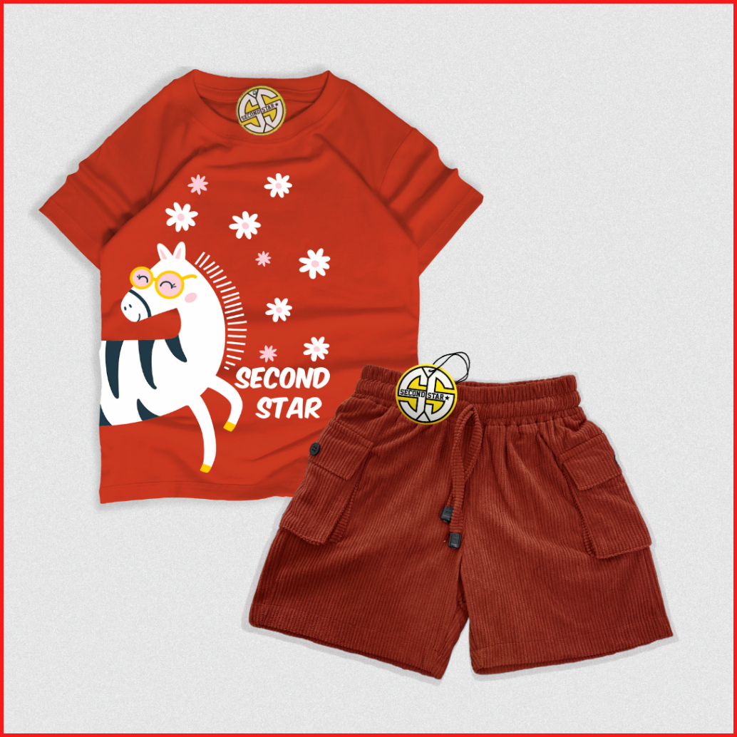 Secondstar Setelan Anak Laki-laki Perempuan Usia 1-10 Tahun Kaos Distro Dan Celana Corduroy Cargo