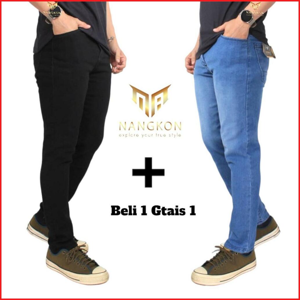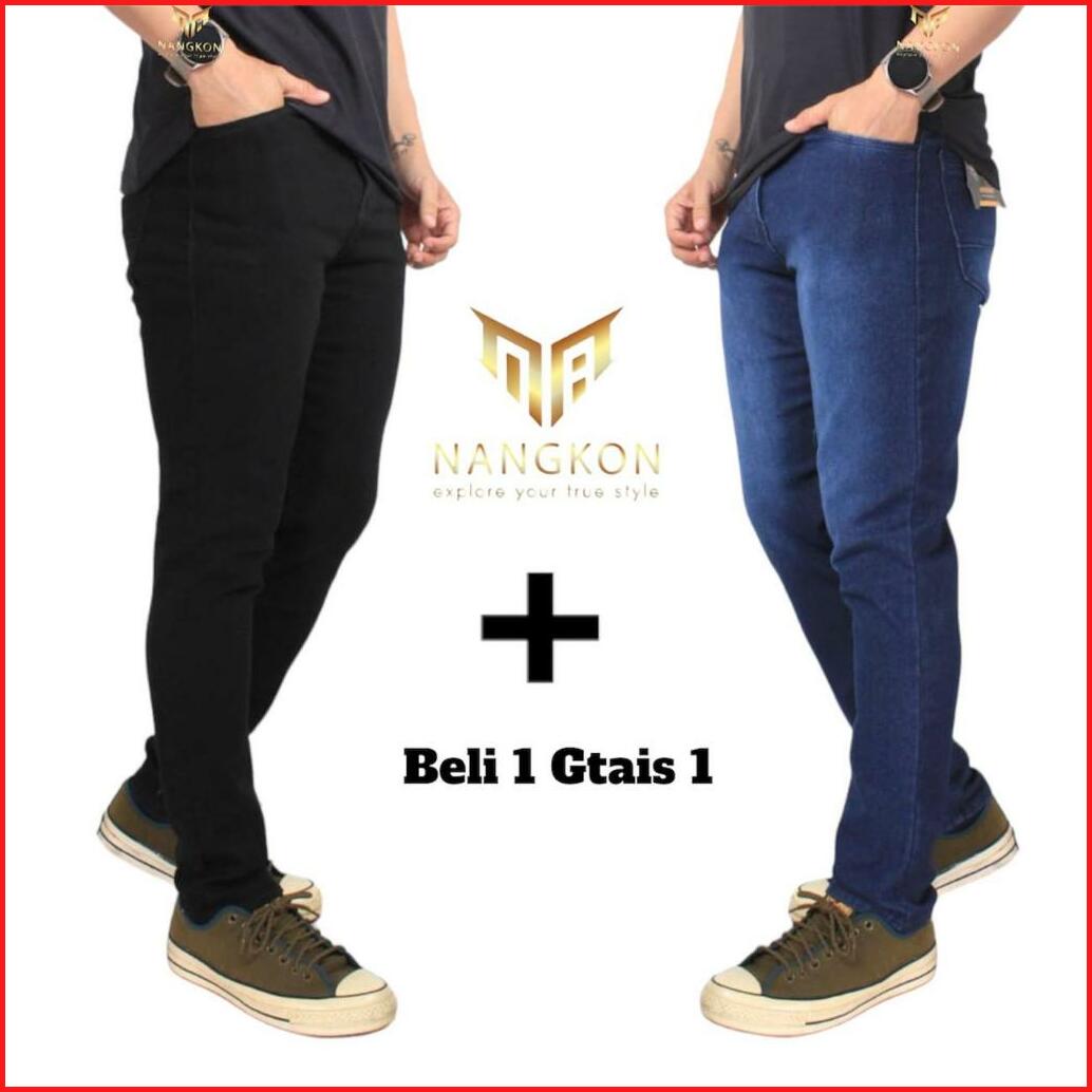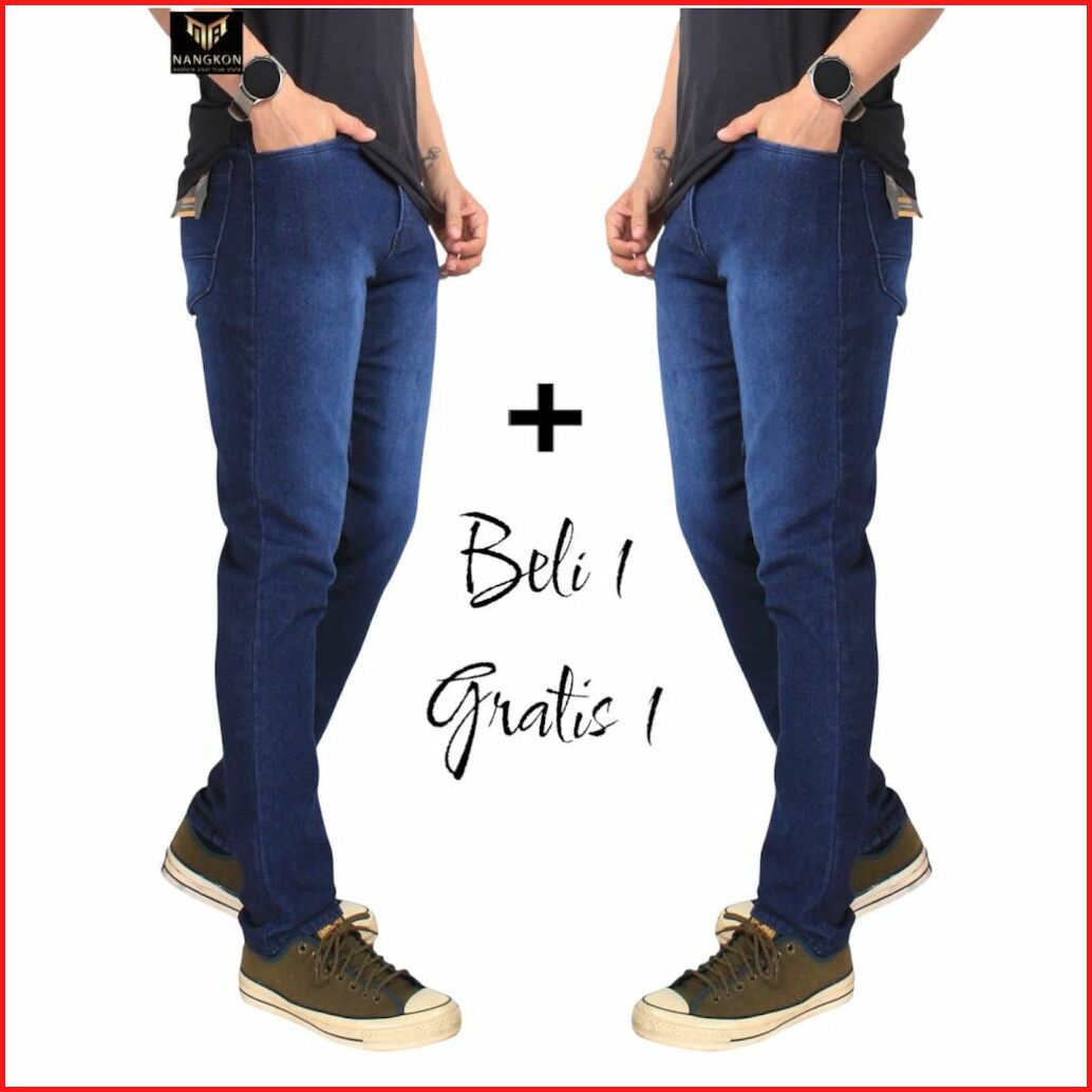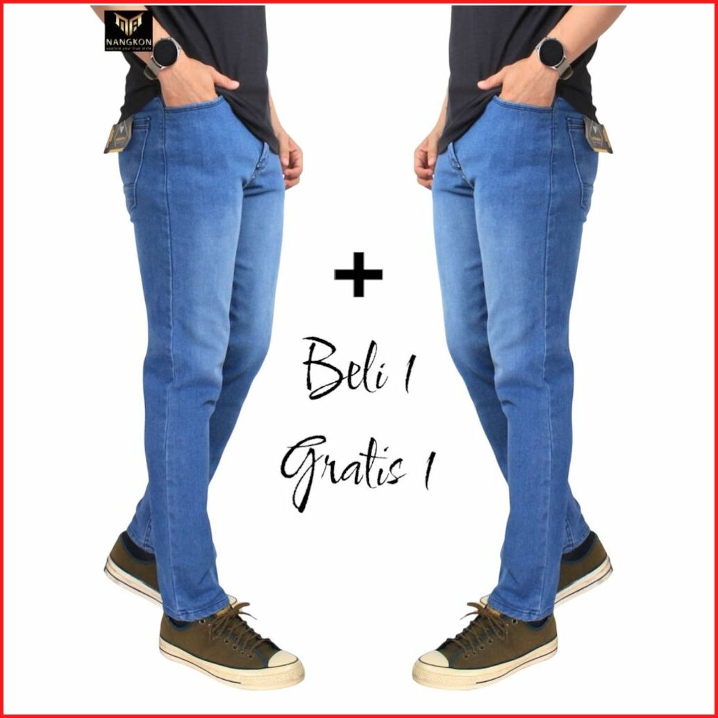 Paket Hemat Beli 1 Gratis Satu Celana Jeans Pria Slimfit Nangkon Bahan Melar Pensil Cowok Strech