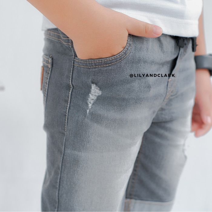 (TERLARIS)Lily And Clark Celana Jeans Pendek Anak Ripped Warna Abu JPA02 - Abu-abu, M