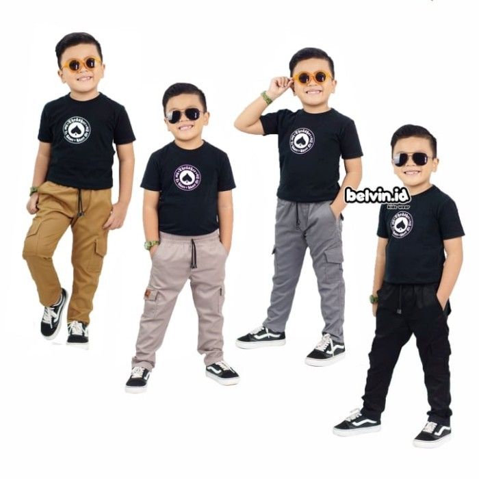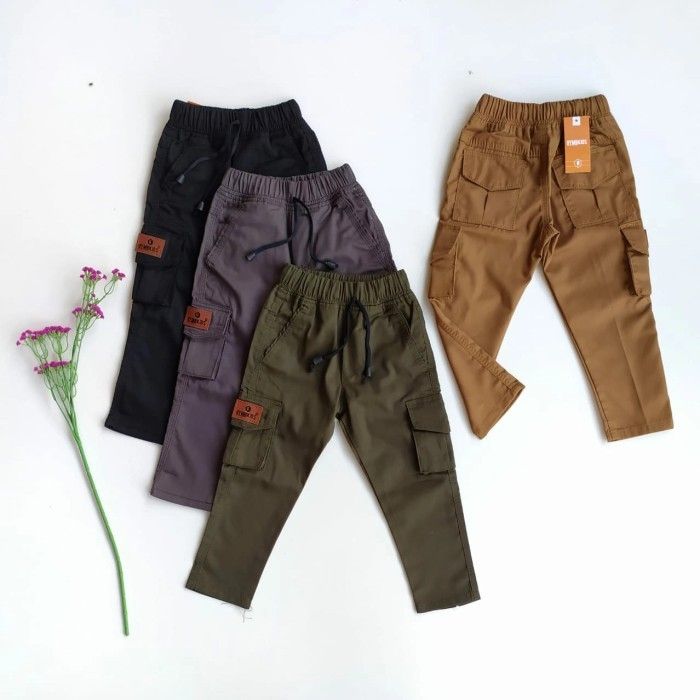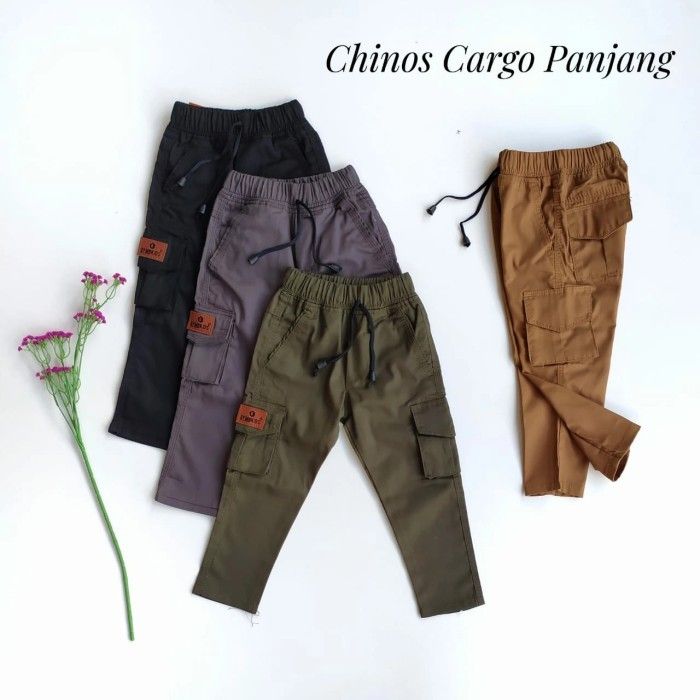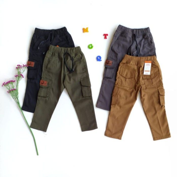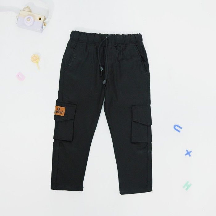(TERMURAH)Celana Panjang Chino Cargo Katun Anak Cowok Laki 2-10 Tahun PREMIUM - Hitam, Size 4 2-3Thn