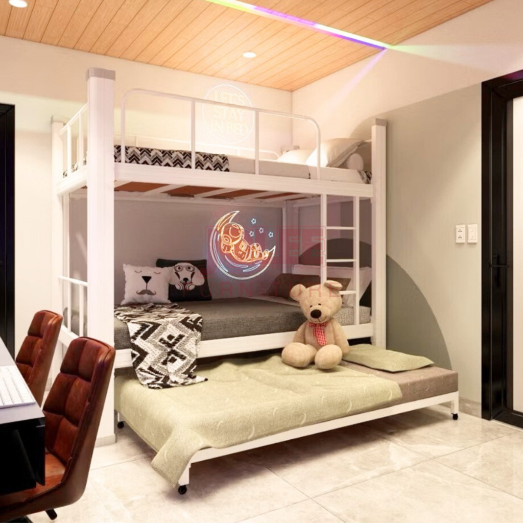 Tempat tidur besi ganda tebal, tempat tidur susun asrama mahasiswa, tempat tidur besi apartemen staf