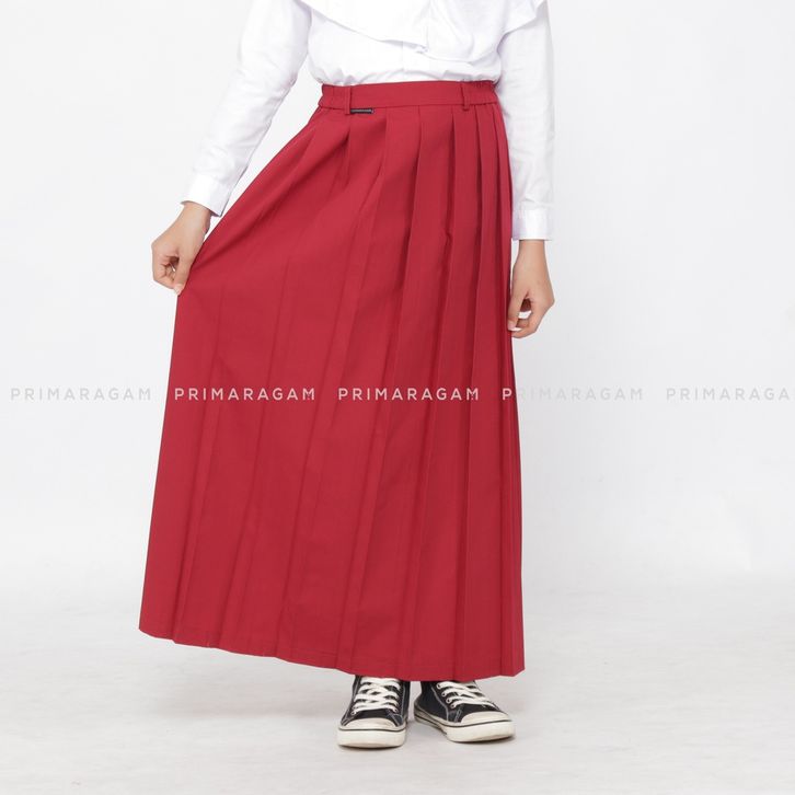 SERAGAM SEKOLAH SD SMP SMA MI LAKI LAKI PEREMPUAN PRAMUKA RAPILO ROK SEKOLAH ANAK PANJANG MERAH REMPEL LIPIT ATAS KARET