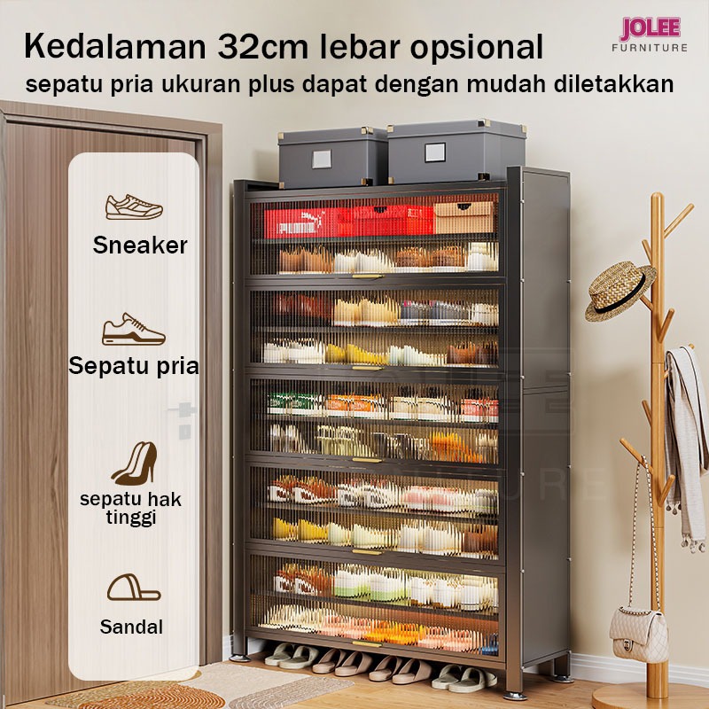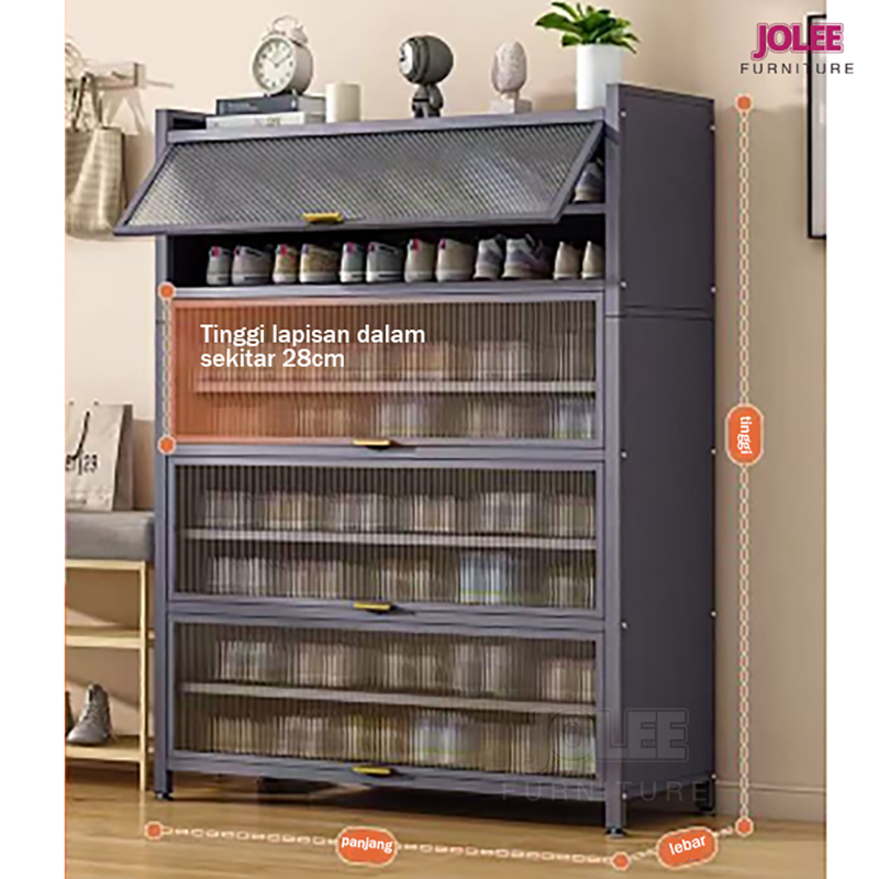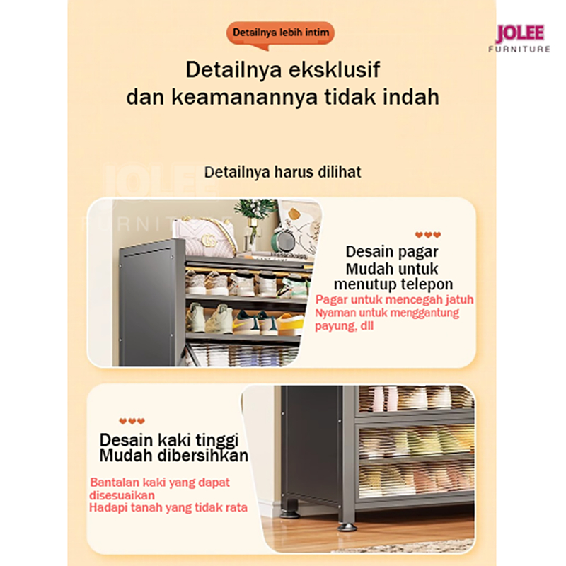 JOLEE-Lemari sepatu logam berkapasitas besar/rak sepatu tertutup/lemari penyimpanan multi-lapis