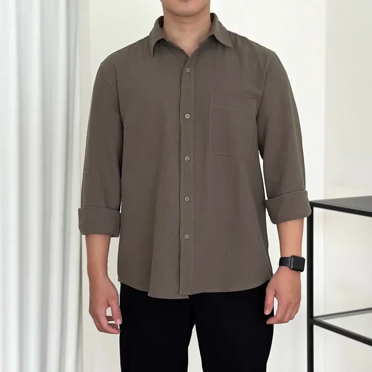 COZYCLUB Long Sleeve Linen Shirt | Kemeja Polos Linen Pria Lengan Panjang | 91