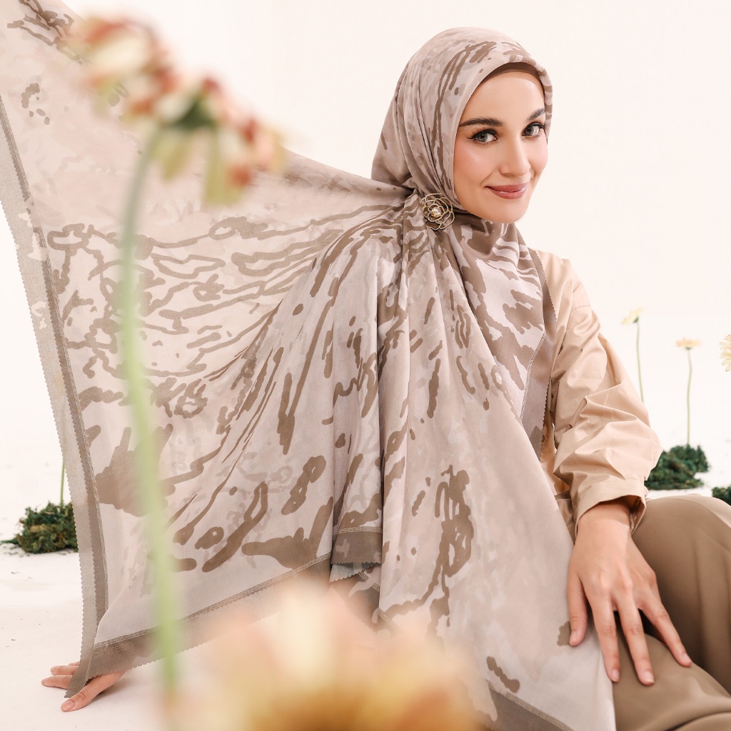 DISKON 25% - Kerudung Segi Empat SHI BY Shireen Sungkar Lumi Scarf Majestic Petal kerudung elegan simple Termurah!
