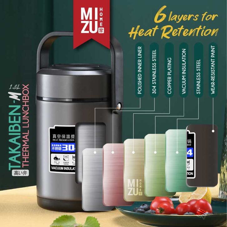 MIZU TAKAIBEN-M 1.8L Thermal Lunchbox Stainless Food Carrier Lunch Bowl Rantang Susun Stenlis Kotak Makan Bekal