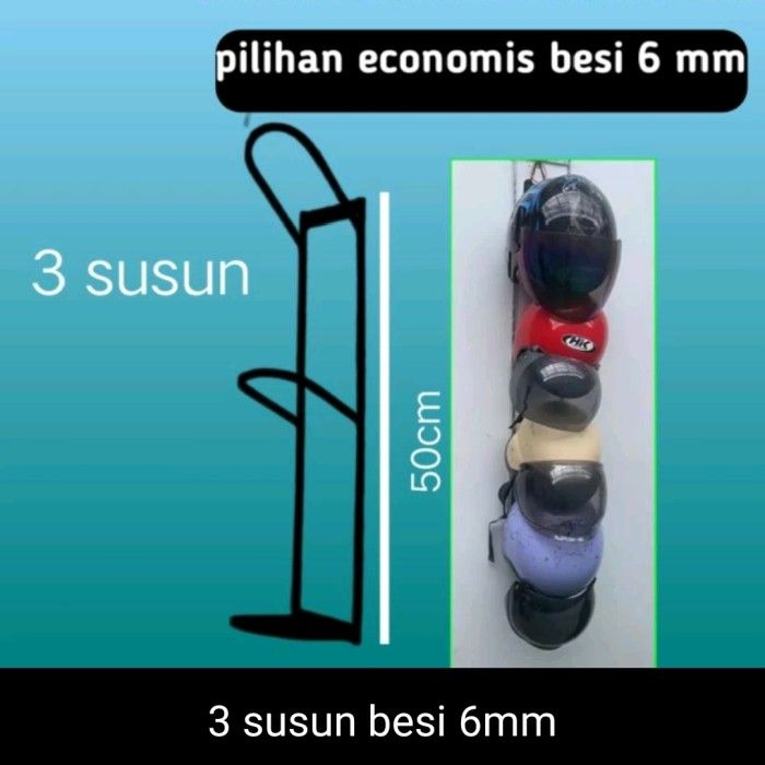 Rak Helm Topi Susun / Gantungan Helm / Tempat Helm Topi Tempel Dinding - Putih, 3 Susun Besi 6