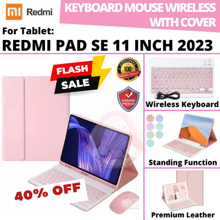 xiaomi redmi pad se 11 inch 2023 book cover leather flip case keyboard wireless bluetooth mouse silent click casing saru
