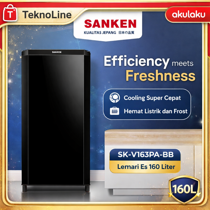 [Mall] Kulkas 1 Pintu SANKEN 160 Liter SK-V163PA-BB – Hemat Listrik Desain Elegan | TeknoLine