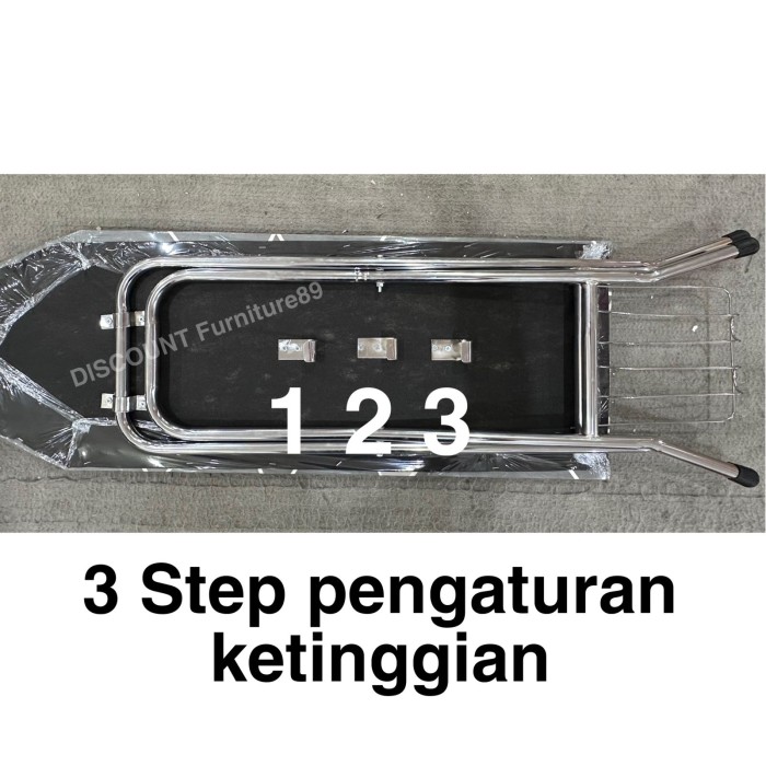 Meja Setrika Rangka Besi Chrome Stainless / Meja Gosok / Rak Setrikaan