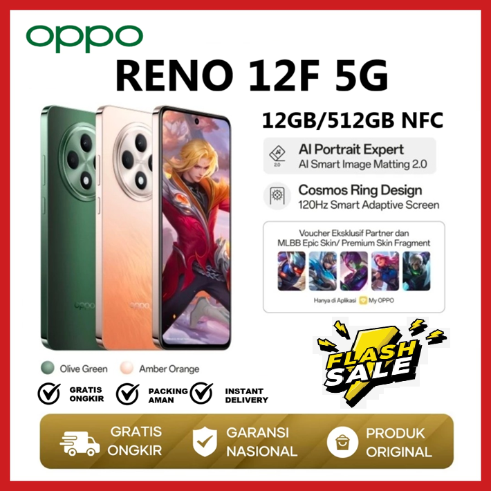 HP OPPO RENO 12F 5G 12/256GB GARANSI RESMI NFC Dimensity 6300 5000mAh Kamera utama 50 MP