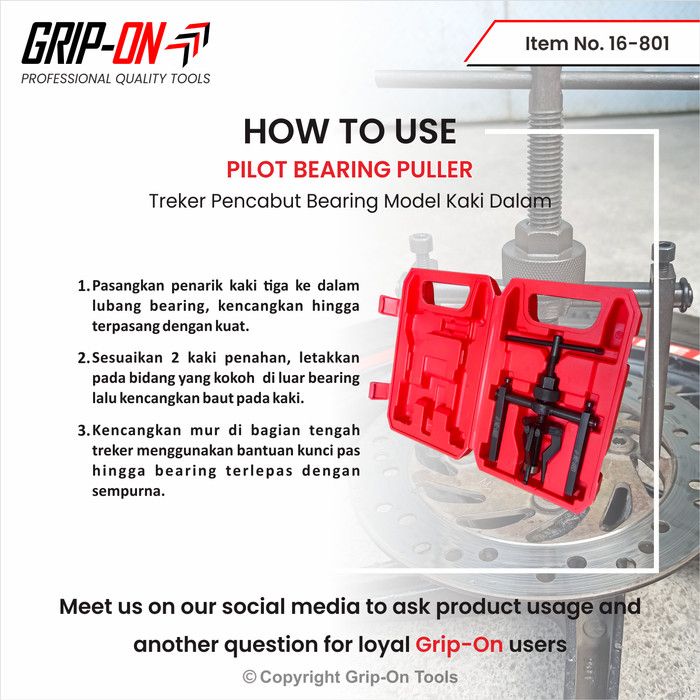 GRIP-ON PILOT BEARING PULLER TREKER ALAT CABUNG BEARING DALAM GRIP ON