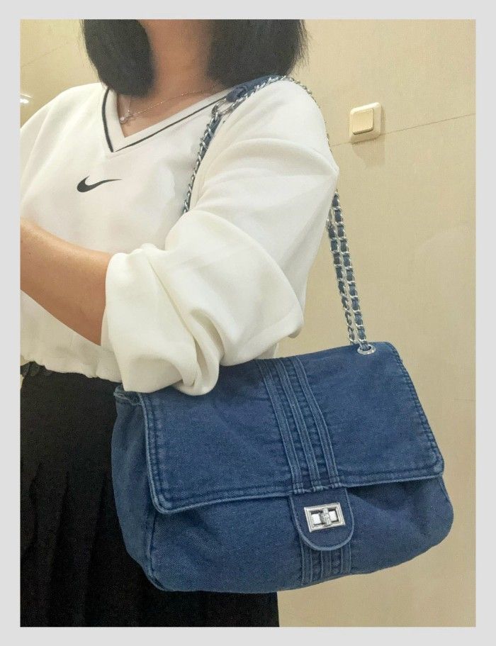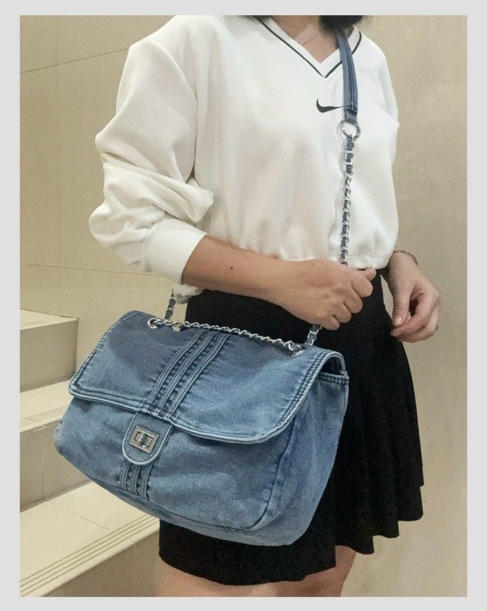 Tas Wanita Tas Selempang Wanita Bahan Denim Kode 8168 - Biru Muda