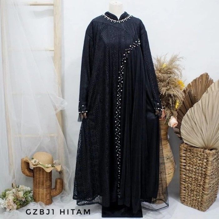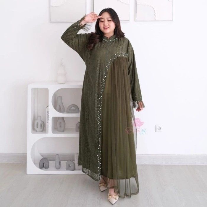Gamis Brukat Gamis zanitha SUPER JUMBO pesta LD 130 140 150 brukat tile mocca - LD 130