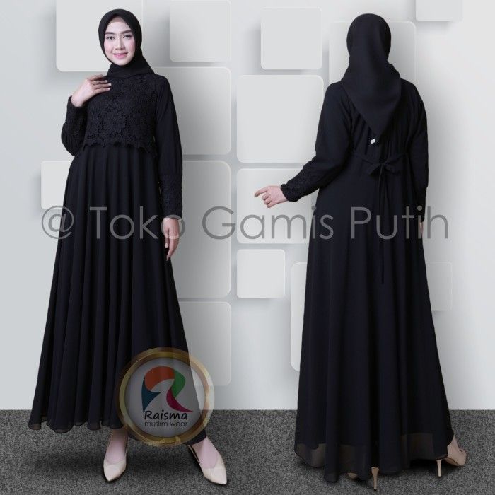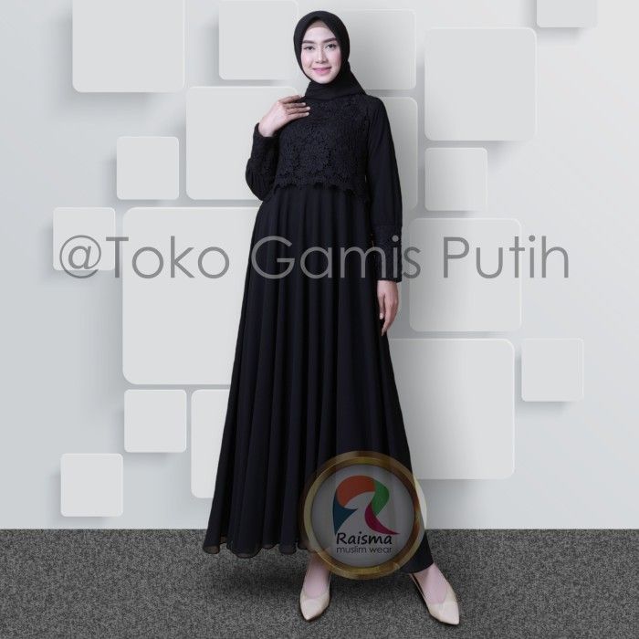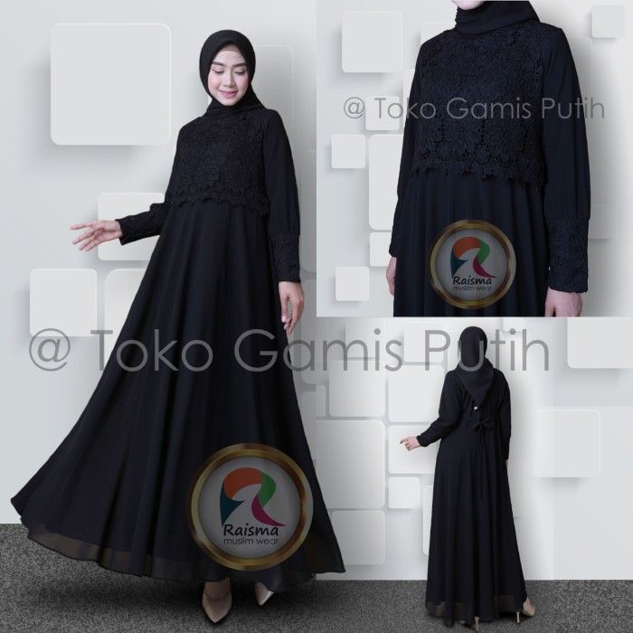 Gamis Brukat outfit GAMIS HITAM POLOS ELEGAN BROKAT / DRESS HITAM REMAJA M0DERN - Hitam XXL