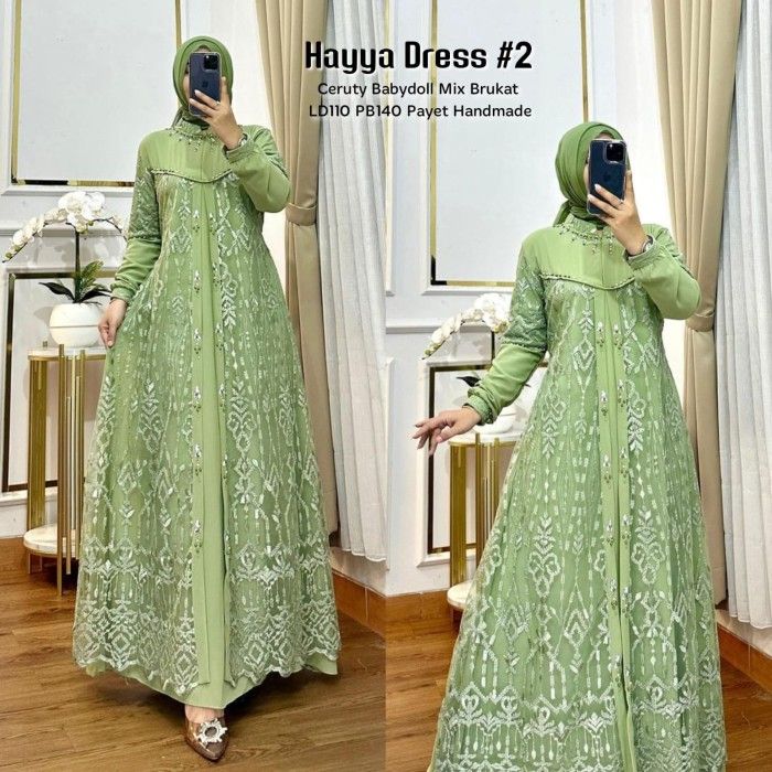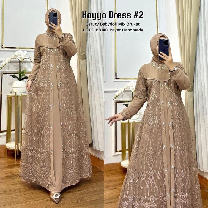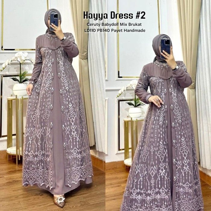 Gamis Brukat Hayya 2 Dress Ceruti Brokat Payet Cantik Baju Gamis Wanita Muslim Fashion Perempuan Dewasa Remaja Cewek Pu